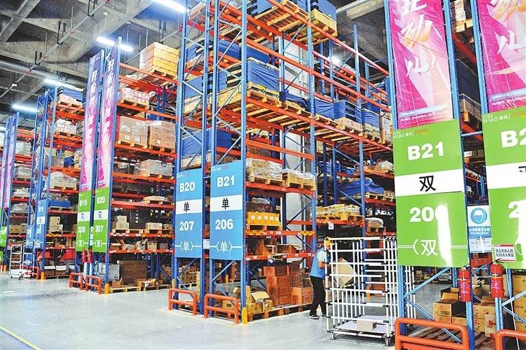 菜鸟郑州保税园区货物分拣车间。