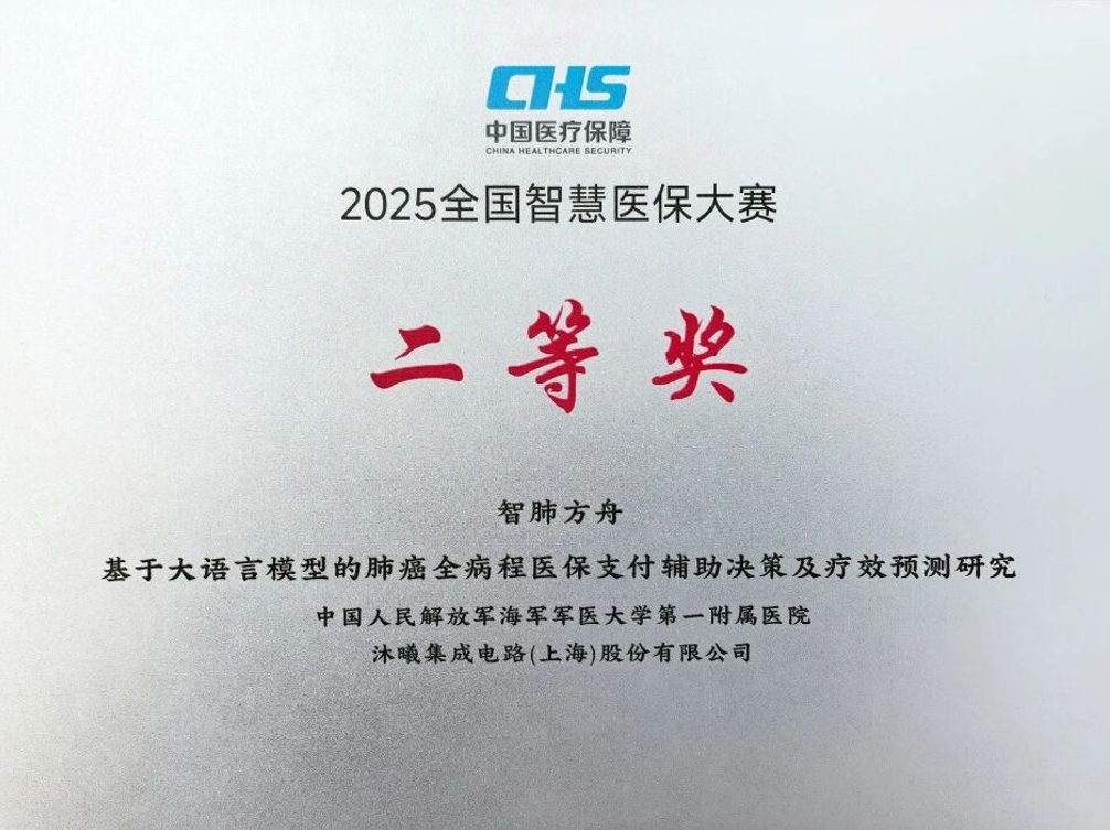 经过激烈角逐,上海长海医院联合沐曦股份研发的“基于大语言模型的肺癌全病程医保支付辅助决策及疗效预测研究”项目进入决赛,荣获全国二等奖。